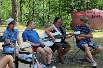 Лагерь был разбит между двух озер, в очень живописном месте. Вокруг лагеря - сосновый бор, море черники. Ребята жили в палатках, спали днём на воздухе, катались на надувной лодке, купались, собирали чернику и хворост, помогали повару готовить еду, по вечерам пели под гитару у костра, в общем, это было настоящее лето. Организацией лагеря и его функционированием занимался руководитель лагеря, сотрудник СПб БОО "Перспективы". В его обязанности входило: организация строительства лагеря, подготовка к каждой смене ребят, организация демонтажа лагеря, руководство деятельностью лагеря внутри каждой смены, закупки, подсчет остатков продуктов, полная финансовая ответственность. Летний палаточный лагерь был организован в три смены: 1 смена – с 7 по 11 июля, 2 смена – с 14 по 18 июля, 3 смена – с 21 по 25 июля. В каждой смене 7 ребят (всего 21 человек, из них 6 на колясках) и 8 сопровождающих (6 сопровождающих + 1 инструктор АФК + 1 медсестра-штатный работник интерната). Среди отдыхающих были как дееспособные, так и недееспособные. В бюджете лагеря молодые люди участвовали своими пенсионными деньгами. Для недееспособных деньги заказывались у социального работника отделения, дееспособные отдавали деньги самостоятельно. Активно использовались продукты питания от интерната, выданные в виде сухого пайка. Основная часть бюджета была обеспечена благотворительными пожертвованиями, сбором которых занимался отдел фандрайзинга БОО "Перспективы". Сопровождающих было больше чем подопечных, так как каждый день из числа сопровождающих назначались двое дежурных по лагерю. Был составлен график дежурств. Обязанности дежурного: приготовление еды, пополнение запасов питьевой воды, (горячей и холодной, плюс воды для бытовых нужд), дров, поддержание костра, стирка вещей, ночное дежурство (помощь ребятам в туалете). На следующий день те, кто дежурил, приступали к работе с 15-00. Рабочий день в лагере с 8-30 до 22-00. Это 13,5 часов. Из них 7,5 часов являются рабочим временем сотрудника. Оно табелируется координатором. Все, что свыше 7,5 часов, является переработкой. Именно это время включено в штатное расписание по лагерю. Фандрайзинг в том числе ищет средства на оплату сверхнормативного времени сотрудников. Реальная сумма за переработки получилась довольно большая. Поэтому на совете координаторов с целью уменьшения расходов на лагерь были выработаны следующие схемы оплаты: часть переработок получить деньгами и часть отгулами. Каждому было предложено 2 варианта: "2 отгула за смену + 50% переработок" или "1 отгул за смену + 75 % переработок", т.к. кому-то важнее отгулы, а кому-то - деньги. Каждый сотрудник только один раз едет в палаточный лагерь (в одну какую-то смену). По два раза никто не едет. Смены составлены таким образом, чтобы учесть отпуска сотрудников, и чтобы на отделении всегда в группе кто-то оставался. Постановка и размонтирование лагеря было сделано силами волонтеров безвозмездно. Всего этим были заняты 8 волонтеров. Среди сопровождающих было также 3 волонтера, которые работали безвозмездно. Общие затраты на лагерь составили 200 000 руб. Видеорепортаж о лагере 2014 г. можно увидеть на сайте телеканала "Союз". В 2015 году лагерь повторился, было уже четыре смены: рассказ, фотографии. А в 2017 г. палаточный лагерь был организован для жителей Дома сопровождаемого проживания.