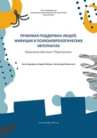 Правовая поддержка людей, живущих в психоневрологических интернатах. Практический опыт "Перспектив" / Анна Удьярова, Андрей Зайцев, Александр Евмененко. - СПб БОО "Перспективы", 2021